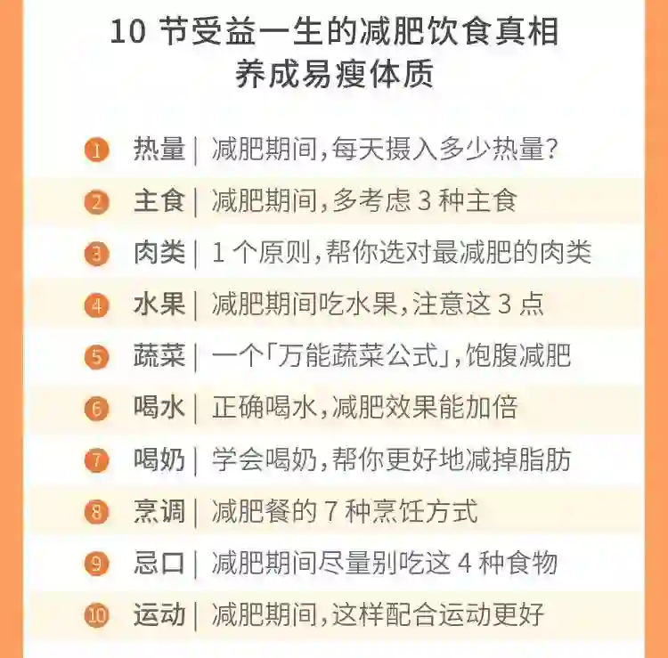 3)忌口:很多人把减肥理解成了"我不能吃什么"。其实更好的思路是搞清楚"我该吃什么"——只要把该吃的食物吃了,遇到不该吃的东西,自然也就没有太多胃口吃了。哪怕偶尔吃一次,也没什么大碍。