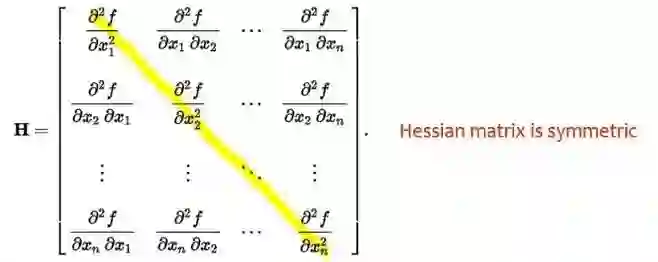黑塞矩阵有一个特点,对于一个系统,如果它的偏导数不分方向的,就是说先对 xi 求导、或者先对 xj 求导,求导的先后顺序不影响二次导数值的话,那么黑塞矩阵就明显是一个对称矩阵,因为 xi、xj 可以互相交换。就是说对先对 x2 求导或者先对 x1 求导是没有关系的,那么∂x1*∂x2 和∂x2*∂x1 是相等的。
