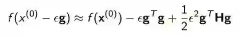 当我们更新 x 值的时候,比如说现在是 x0,然后下一步更新到 x0-εg 的时候(这是刚才梯度下降的定义嘛),带入这个泰勒展开会得到图中下方的公式。