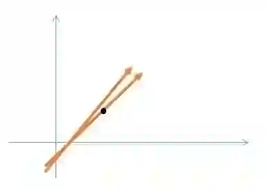 假设这是其中的两个列向量,取了其中一个列向量上的点。这两个列向量过于接近的话,对点进行一个微小的变化,它就有可能跑到了另外一个向量上,就是说它的解发生了发生了很大的变化;按理说这个点是属于向量 1 的,但仅仅是因为很小的一个扰动,它就跑到了向量 2 上,它的解就发生了很大的变化。