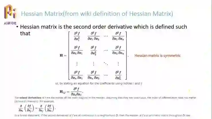 雅克比矩阵是一阶的求导矩阵,还有二阶求导矩阵黑塞矩阵(Hessian Matrix)。