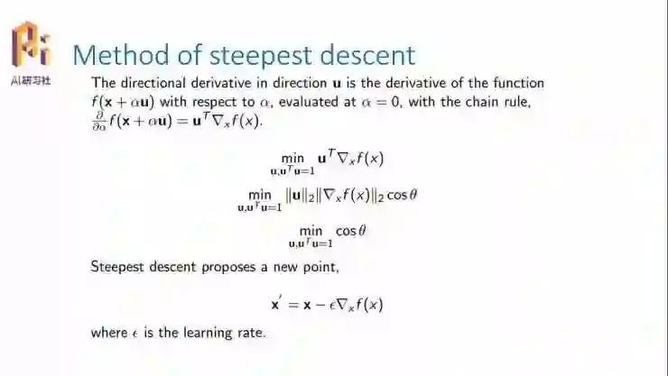 最优化问题,所谓的最优化去找最小值或者是最大值,涉及到两个问题,一是我怎么找、往哪个方向走;第二个问题是,我知道了这个方案以后我应该怎么走,每一步走多少。这基本上是所有求最值的两个问题,一个是找方向,第二个是找步长。