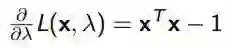 现在我们把这个系统稍微改一下,把它变成一个受限的系统。比如我们要求向量 x 满足这个条件,这样它就变成了一个带有限制的优化问题。这个时候我们可以构造拉格朗日函数,原函数不变,加上它的限制条件,前面加上一个λ变量,然后就可以写出它的目标函数。
