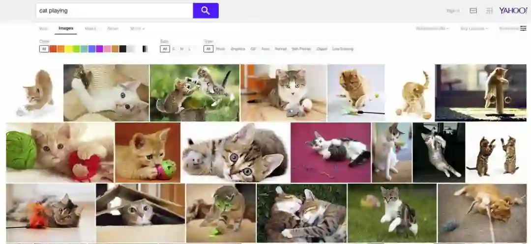 最著名的视觉搜索网站无疑是 Google Images、Bing 和 Yahoo。前两个网站均可使用多个关键词或者单张图像作为搜索输入,以图像作为搜索输入又名「反向图像搜索」(以图搜图)。Yahoo 仅支持关键词搜索,搜索结果同样不错,如下图所示。