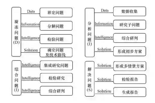 在分析问题阶段,DIIS 包括数据收集、研究子问题、综合研判和形成初步方案。收集和整理各项子问题的相关数据、选定相应专家,初步形成对各子问题的客观认知。利用各学科理论方法,综合相关学科专家意见,对各子问题进行综合研判。依据研判结果,初步形成各子问题的解决方案。