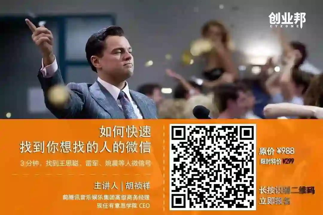 (3)春节限时特价!现加入创业邦会员,仅需1098!再送300元无门槛优惠券,并获得40+堂价值4888元的CEO创业必备课程、12本有声书、12节爆款课程,4000+创业人脉、行业、地区各个社群资源对接;千元文档大礼包;免费参加创业邦全年3次峰会及无限次参加全国12座城市线下所有活动!扫码即可获得: