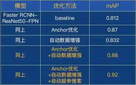 继续把自动超参搜索应用到本案例中,效果从0.88提升到0.92。总体来说,我们通过一系列的效果优化,从最初的0.812提升到了现在的0.92,效果上非常可观。