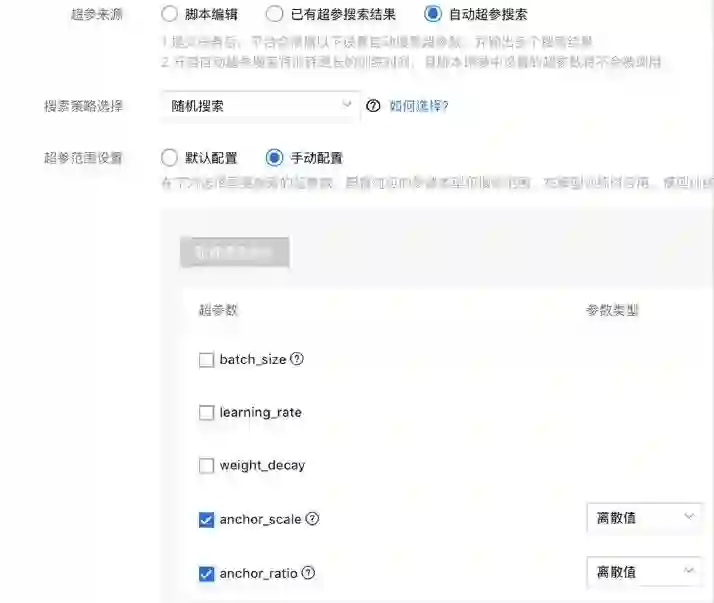 其缺点是比较耗费计算资源。但是相关算法能力已经在EasyDL专业版集成,用户可以通过EasyDL专业版创建项目,实现自动超参搜索。