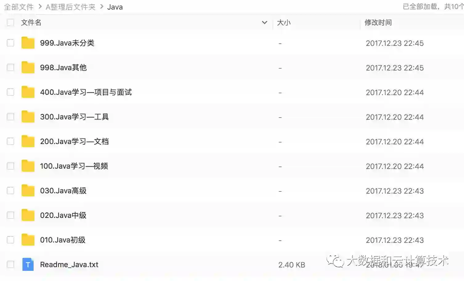 在这里你可以找到学习Java时用到的各种资料,其中包括Java初级,Java中级,Java高级相关资料。