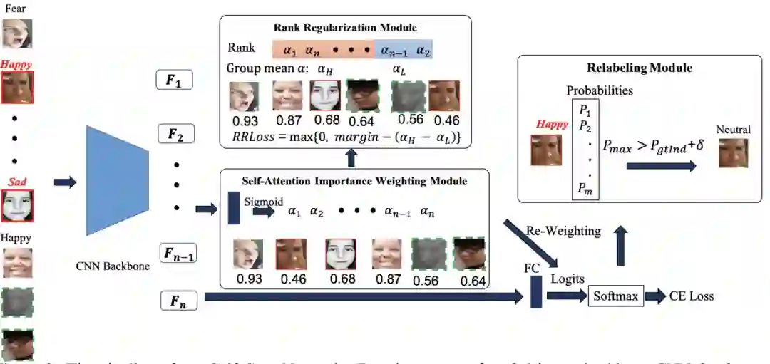 于是作者就提出了SCN,主要由三个关键模块组成:self-attention importance weighting、rangking regularization和nosie relabeling。
