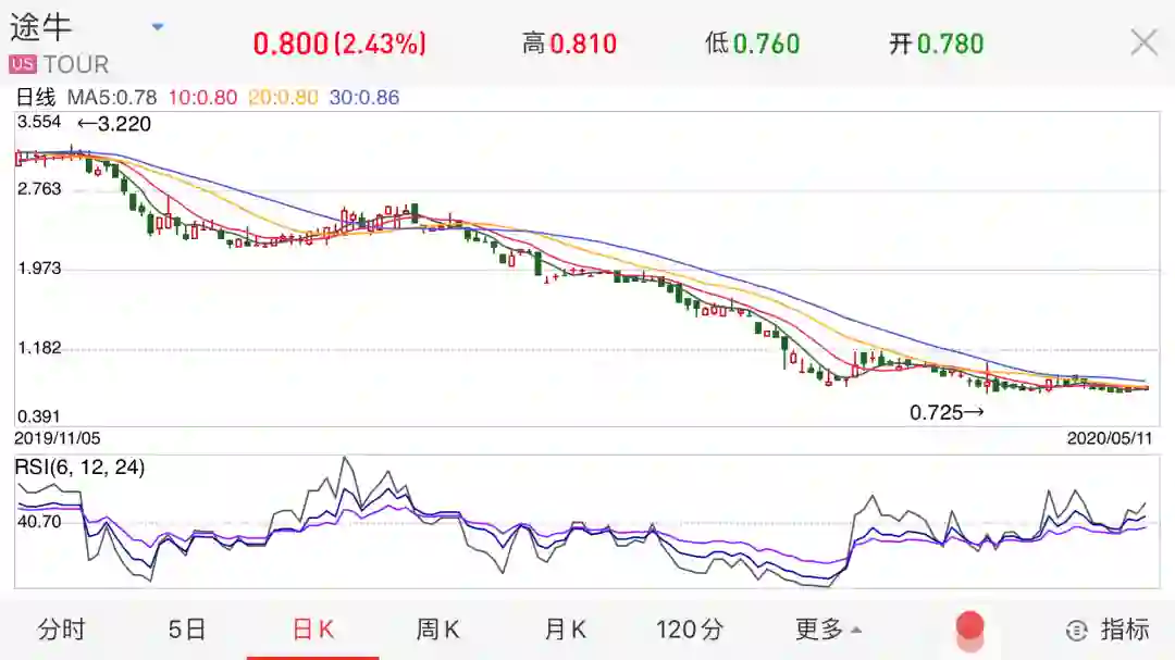 4月16日后,途牛的股价就再也没回到1美元以上。