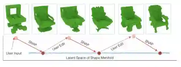 我们提出使用生成对抗网络(GAN)来协助完成三维图像设计,这一设计只需要通过一个简单的交互界面。使用者就像在游戏“我的世界”中一样,编辑三维栅格像素点。它可以在任意时间执行SNAP命令,以使得将原本粗糙的模型转变为期望的形状,这些粗糙模型可以被编译以及执行SNAP命令直到满足期望的结果。这种方法的好处是,它可以协助初学者在仅给出特定的原始数据时能够创建三维模型的特征。我们的主要贡献是围绕3D-GAN传建一个适合的投影算子,它将任意的三维空间像素点输入到一个潜在的向量,该算子可将这些像素映射为相似的形状。实验证明我们的方法可以像期望的那样用于计算机辅助的交互式三维模型重建。