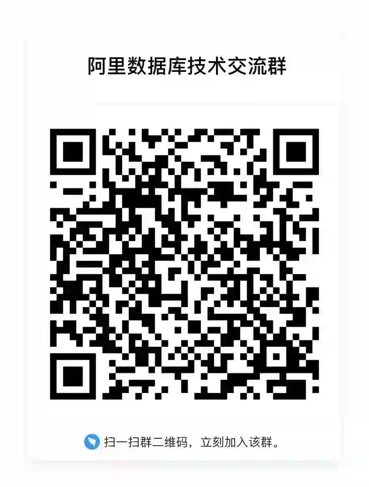 我们建了一个数据库技术交流群,欢迎从事数据库行业的同学加入。这里只聊技术,不谈别的。在钉钉搜索群号:23124548,或者用钉钉扫描下方二维码,即可加入,与阿里数据库技术团队、行业同仁交流、探讨。