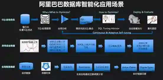 后来,这些监控数据和全量SQL成为了一个巨大的待挖掘的宝库,通过对这些数据的分析,并与AI技术相结合,我们推出了CloudDBA数据库智能化诊断引擎。我们相信数据库的未来是Self-drvingdatabase,它有四个特性:自诊断、自优化、自决策和自恢复。如前文所述,目前我们在智能化方向上已经取得了一些进展。
