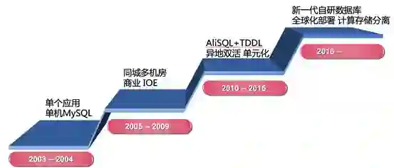 如果将阿里数据库发展历史分为三个阶段的话,分别是: