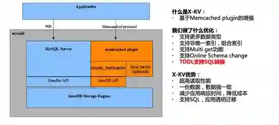 在双11的历史上,阿里巴巴自研缓存-Tair是非常重要的技术产品,数据库正是因为有了Tair的帮助,才扛起了双11如此巨大的数据访问量。在大规模使用Tair的同时,开发同学也希望数据库可以提供高性能的KV接口,并且通过KV和SQL两个接口查询的数据是一致的,这样可以大大简化业务开发的工作量,X-KV因此因用而生,它是X-DB的KV组件,通过绕过SQL解析的过程,直接访问内存中的数据,可以实现非常高的性能以及比SQL接口低数倍的响应时间。X-KV技术在2016年双11第一次得到了应用,用户反馈非常好,QPS可以做到数十万级别。在2017年双11,我们又做了一个黑科技,通过中间件TDDL自动来实现SQL和KV的转换,开发不再需要同时开发两套接口,只需要用SQL访问数据库,TDDL会自动在后台把SQL自动转换为KV接口,进一步提升了开发的效率,降低了数据库的负载。