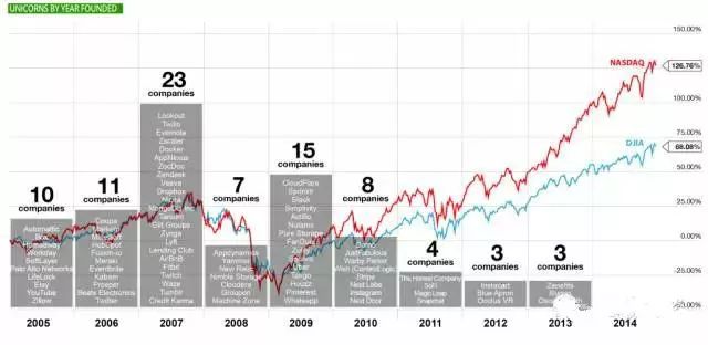 而历史也证明,在每次的经济危机之后,诞生伟大公司的可能性会更高。美国科技网站Techcrunch发表的一篇关于独角兽公司的研究报告就指出:在2007年到2009年全球经济遭受重创之时,诞生了最多的独角兽公司。也就是说,经济下行、市场低迷导致的各种困难,反而会催生伟大的创新。