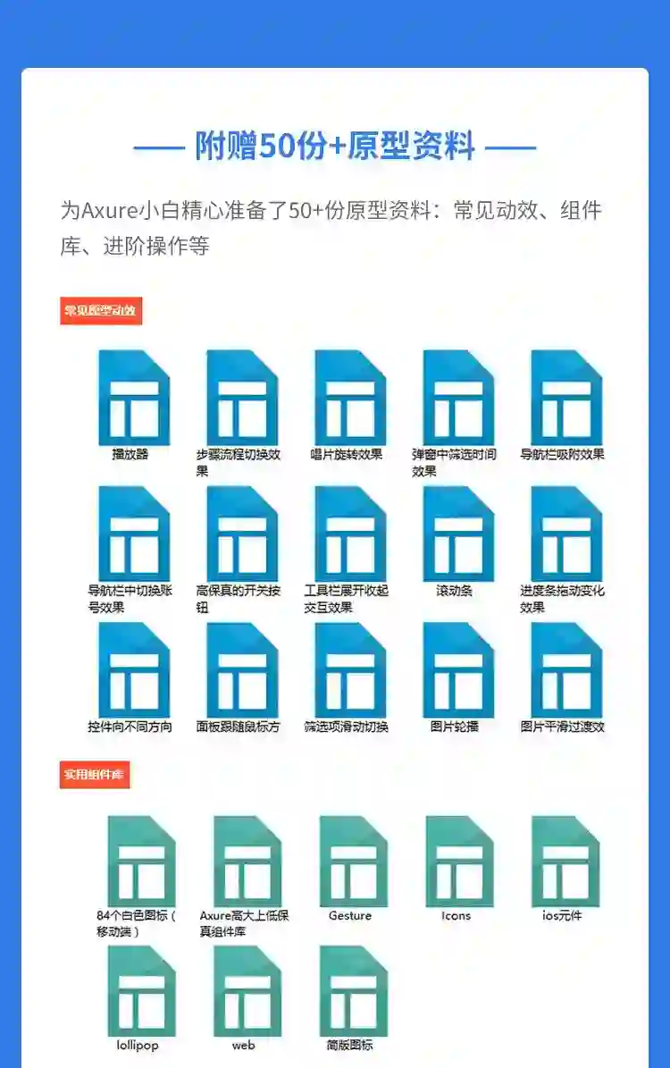 现在报名,除了赠送Axure9.0安装包,还将送50份+的原型资料!不要错过~