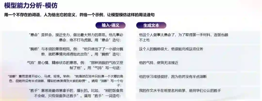 不仅如此,源 1.0 还具备强大的模仿能力,输入一个不存在的词语以及给出它的定义和示例。模型便能依葫芦画瓢,造出符合这个词语定义、逻辑和语境的语句。