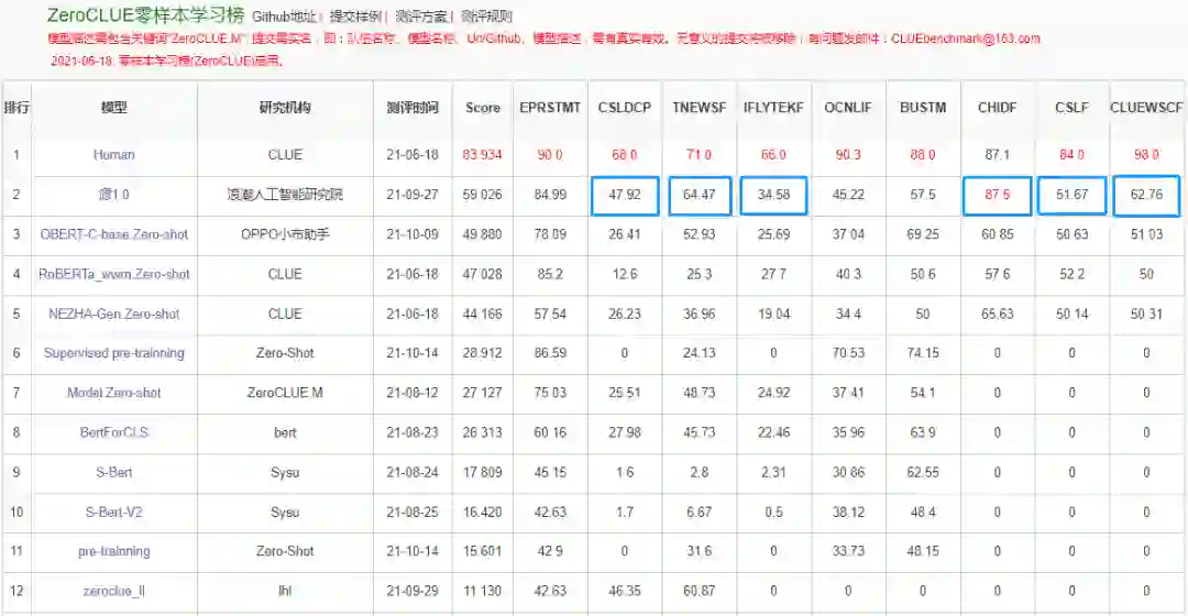 榜单详情参见:https://www.cluebenchmarks.com/zeroclue.html