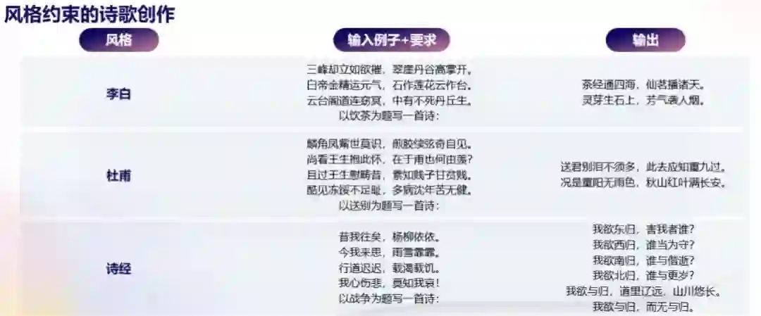 除了轻松应对大多数语言大模型都能完成的对话、故事续写、新闻生成和接对联等任务,源 1.0 还具备风格约束的诗歌创作能力,比如给出李白、杜甫或诗经风格的诗句,模型便能输出相应风格的诗句。堪称诗界的百变大师!