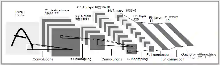下面是Yann LeCun设计的最早的LeNet-5卷积神经网络,这是图像识别领域的几个早期成果之一。