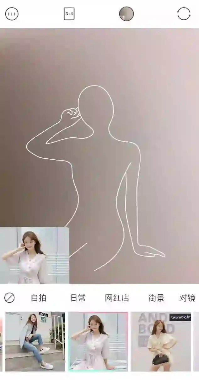 轻颜相机的另一个创新点是,通过网红明星的美照姿势为用户提供模板,解决选景点、摆姿势、做表情等痛点。