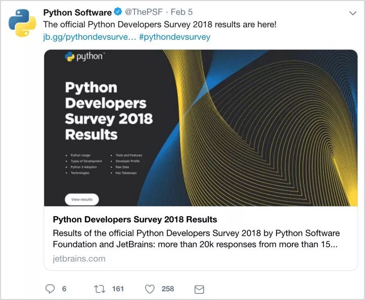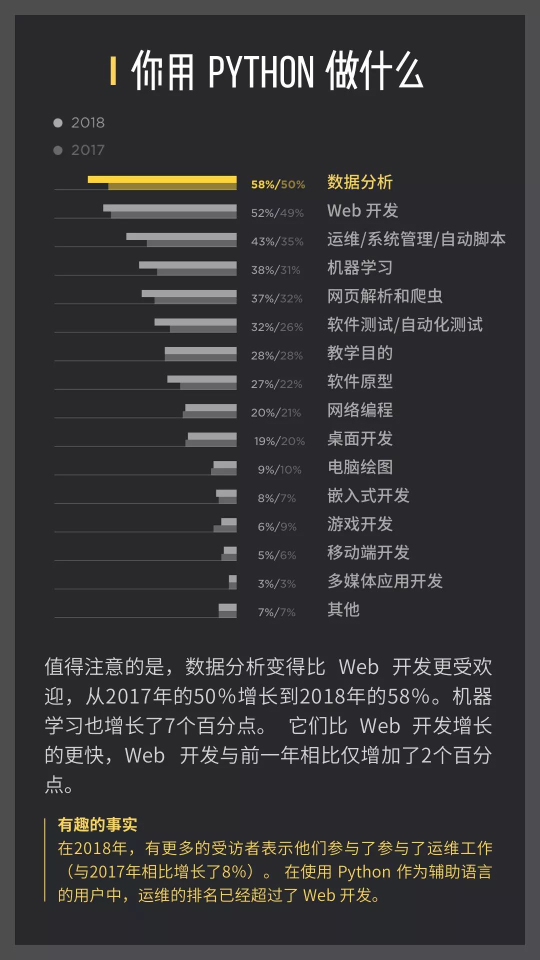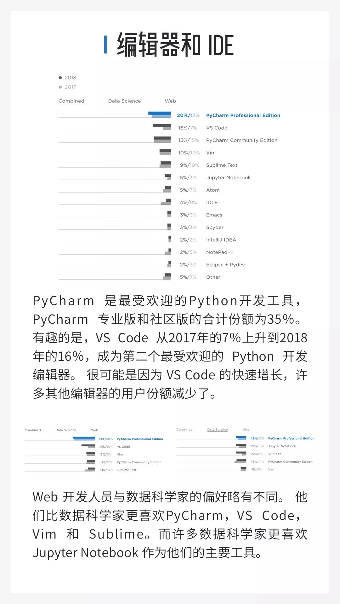 统计方式公正公开,所有源数据、统计方式,均在官网可以查证:https://www.jetbrains.com/research/python-developers-survey-2018/