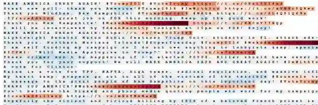 这是LSTM生成的相关声明(好吧,其中只有一篇是真的推文;猜猜看哪篇是真的推文吧!):