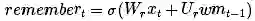 记忆向量remembert通常被称为记忆门(尽管记忆门中的1仍表示保留记忆,0仍表示忘记),表示为ft。