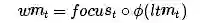 接下来,让我们更新一下工作记忆。我们想要学习如何将我们的长期记忆聚焦到能立刻发挥作用的信息上。(换句话说,我们想要学习需要将哪些数据从外接硬盘中转移到用于工作的笔记本上)。因此,此处我们来学习一下关注/注意向量(focus/attention vector):