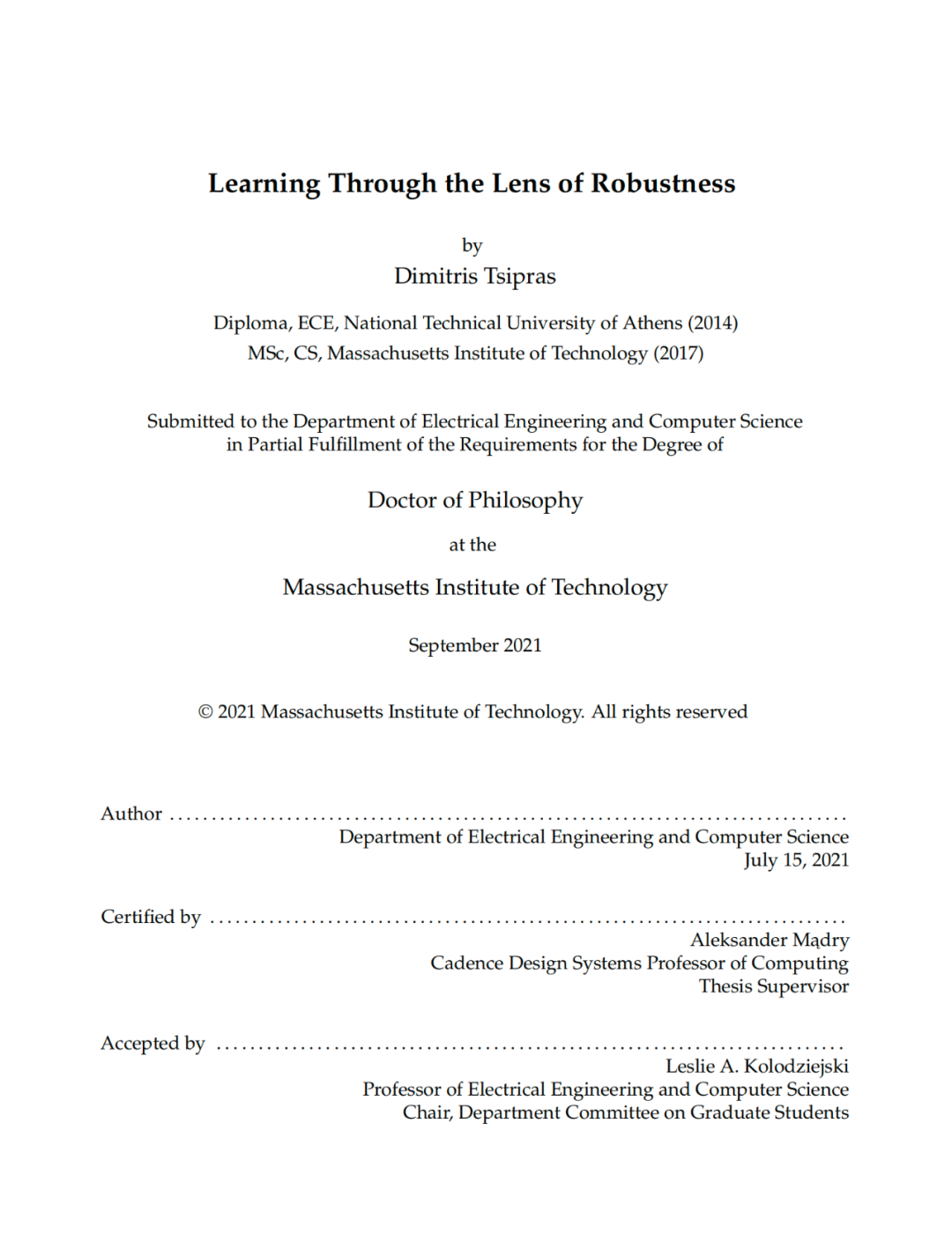 Dimitris Tsipras 是斯坦福大学的博士后学者。他的研究重点是理解和提高机器学习系统在面对现实世界时的可靠性。Tsipras 毕业于雅典国立技术大学的电气和计算机工程系,并在麻省理工学院取得计算机科学硕士和博士学位。