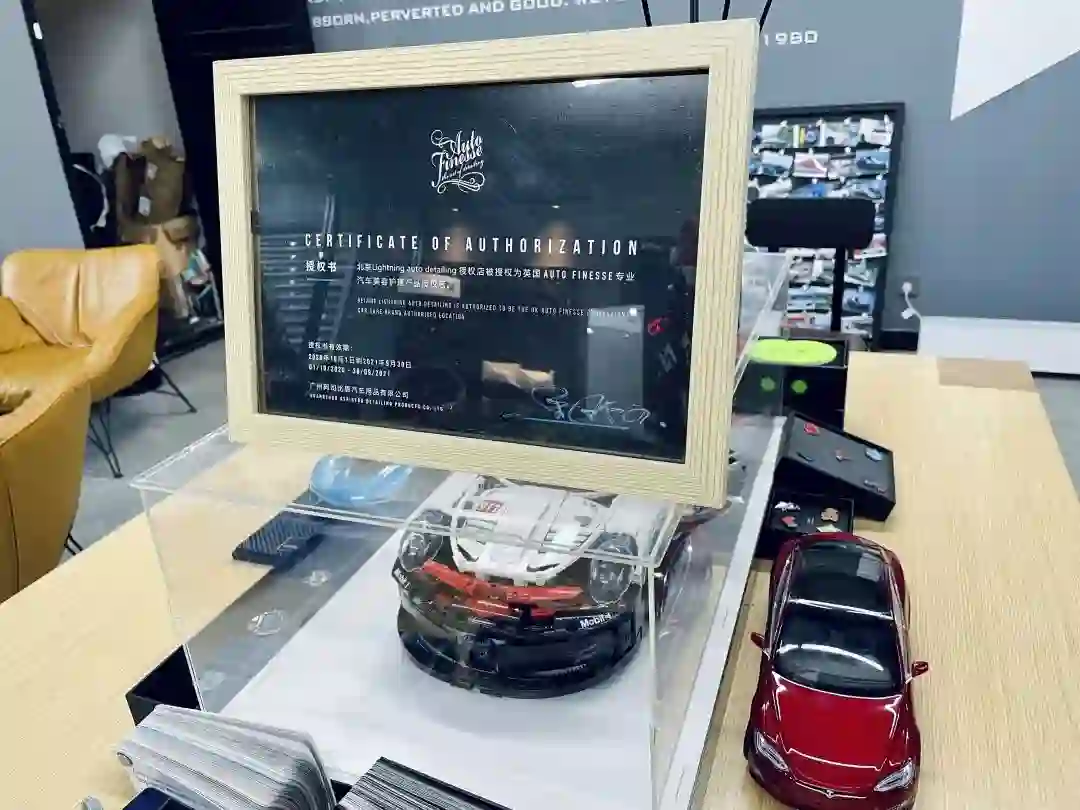 为了提升专业技能,三位合伙人还考了AF资格证(Auto Finesse 英国汽车美容奢侈品牌)。“一般少有改装店的员工拥有这个资格证。”