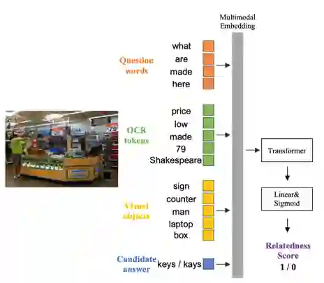 为了解决通用视觉问答(VQA)方法无法处理图像中文字信息的缺陷,文本视觉问答(TextVQA)任务被提出。TextVQA为了回答与图像中文字相关的问题,需要同时考虑视觉场景和文字等多个模态的信息及其关系,具有很大挑战。目前主流的方法通过引入一个外部的光学字符识别(OCR)模块作为前处理,再将其与VQA框架结合预测答案,这会使得TextVQA性能很大程度上受到OCR精度的影响,具体表现为以下两种误差累积传播现象:1)OCR错误使得对文字的直接语义编码错误,导致多模态信息的交互推理过程出现偏差,从而无法定位出准确的答案。2)即使是在推理和定位答案正确的情况下,OCR错误仍然会导致最终从OCR结果中“复制”的答案错误。另外,视觉物体模态与图像文字、问题模态交互时存在语义间隔,使得多模态信息无法有效融合。
