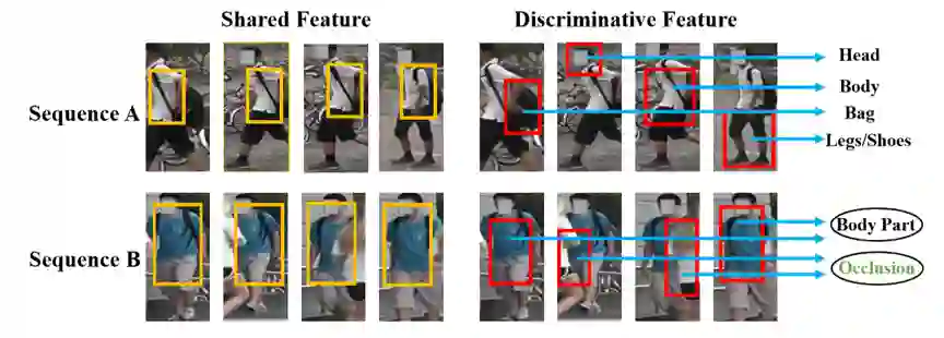 行人重识别技术旨在利用计算机视觉技术在不同摄像头下检索特定的监控行人图像或视频,对辅助刑侦破案、实现高危人群联动监测等具有重要的研究意义。相较于传统的图像行人重识别,视频行人重识别利用了视频数据中丰富的时空信息,因而能够进一步提升检索精度。然而,现有的视频行人重识别方法没有充分挖掘视频数据中的信息,从而限制了模型的视频表征能力。本文认为视频中每一帧的判别性信息与整个序列的共享信息对视频表征来说均具有重要作用。