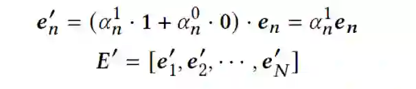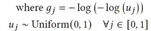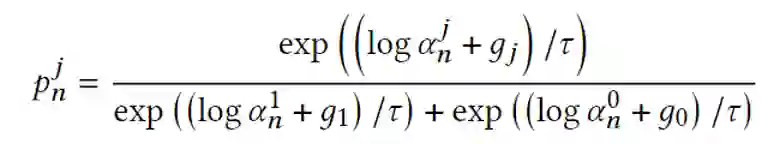 然而,这样的定义无法很好的模拟真实环境中进行特征选择的结果(使用,不适用分别对应1,0的权重)。因此,在我们的工作中使用Gumbel-Softmax模拟真实的选择,从而既保持了框架的可导性,又可以得到十分接近0或1的值。
