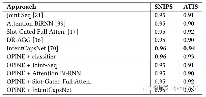 Figure 4 OPINE在SNIPS和ATIS上的表现