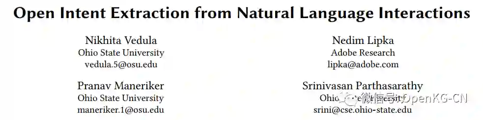 Vedula N, Lipka N, Maneriker P, et al. Open Intent Extraction from Natural Language Interactions[C]//Proceedings of The Web Conference 2020. 2020: 2009-2020.