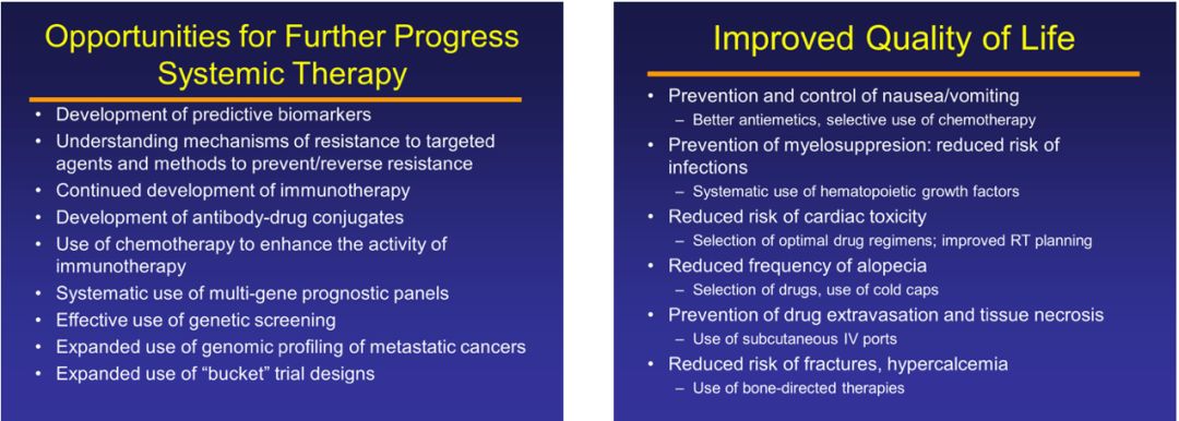 而在挖掘疾病本质、提升治疗疗效的同时,也不要忘记医者仁心,以人为本。2019年ASCO会议以“爱患如己,以患为师”(Caring for Every Patient,Learning from Every Patient)为主题,将肿瘤的诊疗中心转移至患者身上。什么才是高质量的治疗?怎样才能给患者风险收益最佳的临床决策?我们要了解和尊重病人的意愿与需求,共同制定最佳的个体化治疗方案;要注重患者的体会和感受,通过对疾病的“全方位、全周期”管理提高治疗效果、提升生活质量。