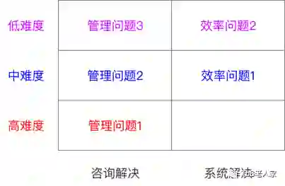 这三种方案,按照方法类型(咨询解决/系统解决)和方法难度(高难度/中难度/低难度)可以分为六个象限。