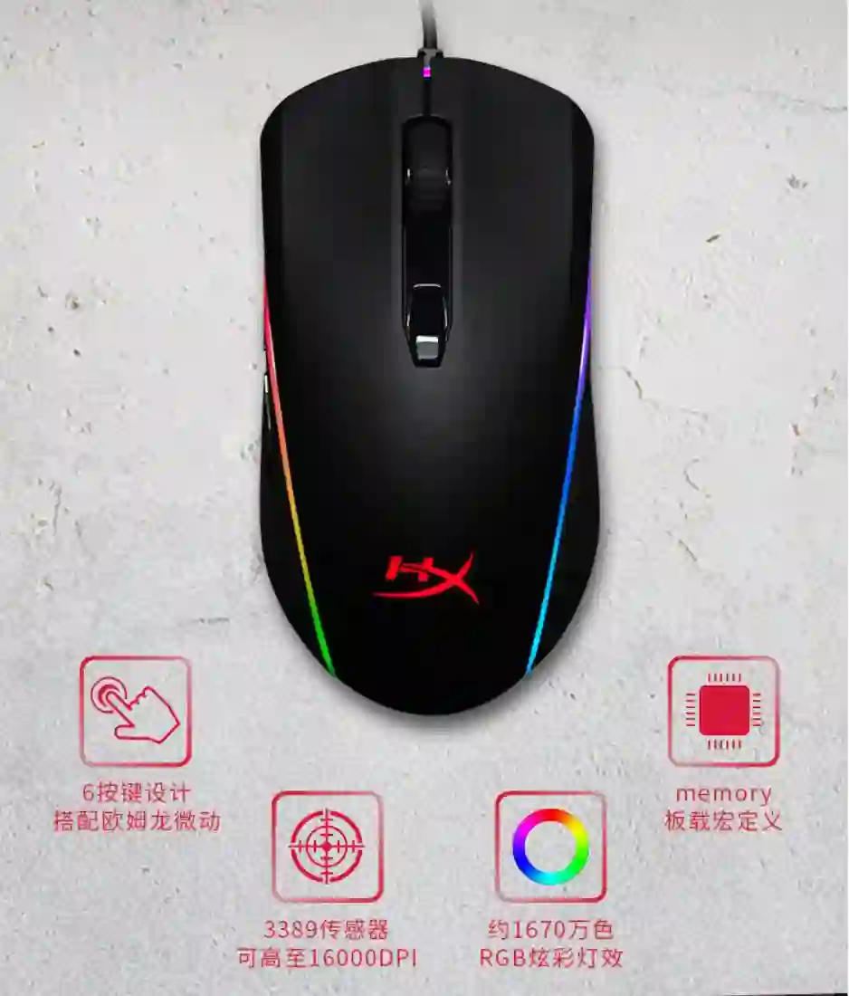 选购理由:这款鼠标是入门级最便宜的鼠标了,100 快不到就可以拥有它,自带 RGB 炫光,手感也不错,办公游戏都适用,采用 Delta Zero 传感器,虽然不是 HERO 16K,但是 100 块不到你要什么自行车?