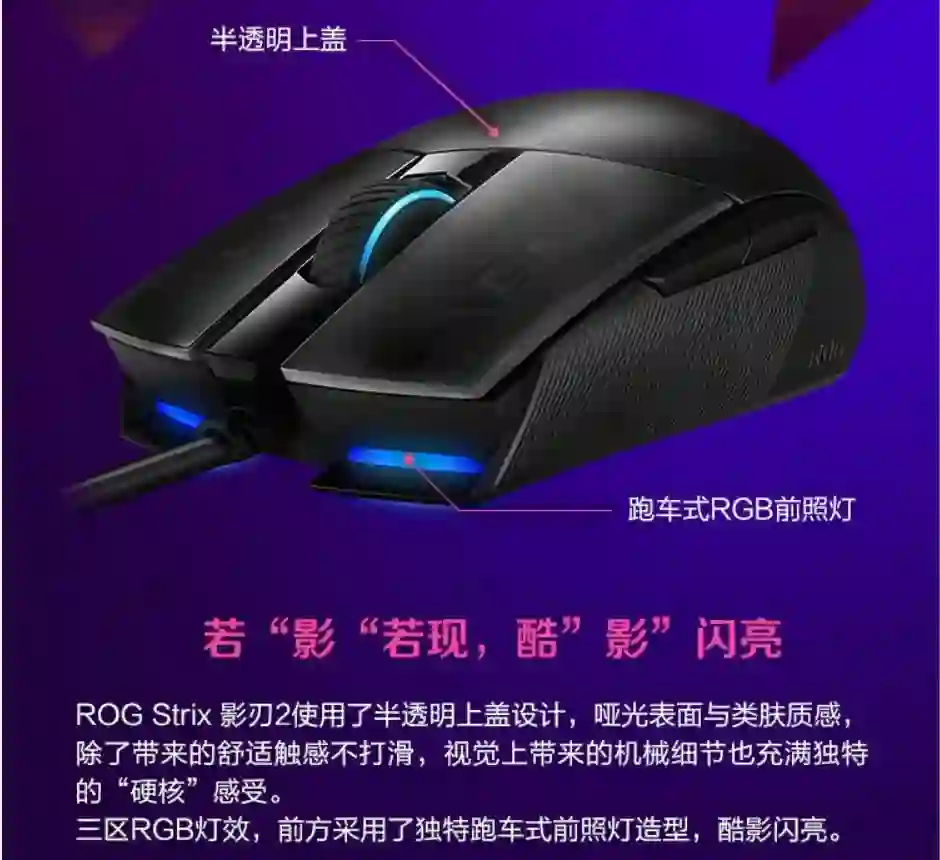 推荐理由:ROG 新款鼠标,信仰加成,RGB 效果不错,可以联动所有硬件,另外过保了可换微动,基本保证鼠标用个 3 年是不成为题的,充值一波就对了。
