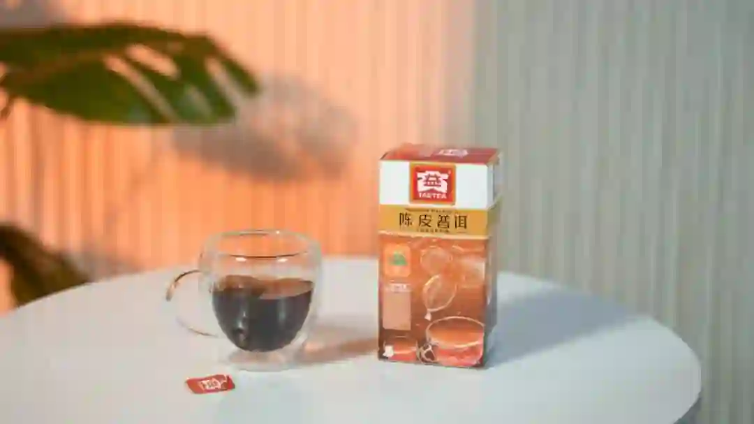 至于茶味嘛,撕开茶包就是一股很浓的陈皮的中药味儿扑面而来。泡出来的茶汤颜色特别深,普洱熟茶和陈皮味儿挺融洽,习惯喝普洱茶的友友应该会喜欢这一款茶。