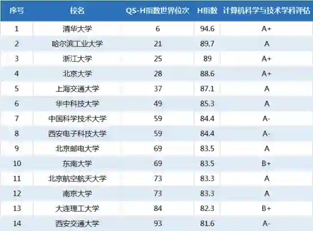 世界范围内具有重要影响力的QS教育组织去年发布了QS世界大学计算机水平H指数,