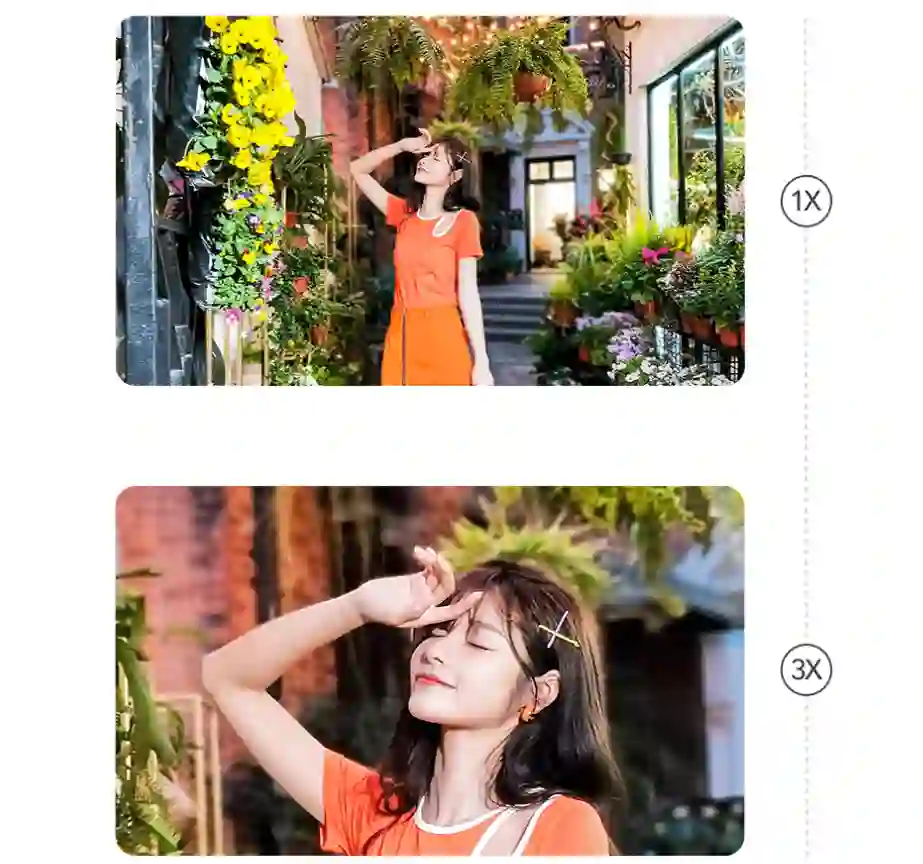 该镜头官方称最大支持3倍光学变焦,5倍混合变焦,20倍数码变焦,轻松拉近远方的美景。等效焦距80mm的镜头非常适合拍摄人物特写,这也满足了一部分日常爱拍人像的用户需求。
