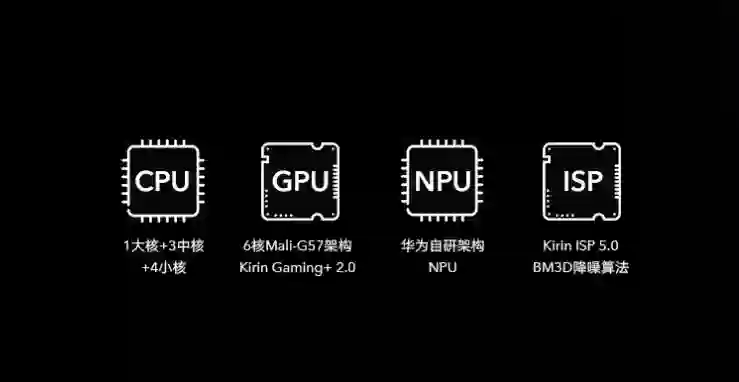 在CPU方面,麒麟820芯片比上一代芯片有了巨大的提升。在上一代麒麟810搭载2个A76大核加6个A55小核的基础上,麒麟820 的CPU集成了1个大核+3个中核(基于Cortex-A76开发)和4个小核(Cortex-A55),其中大核的主频高达2.36GHz (1*A76 Based @2.36GHz +3*A76 Based @2.22GHz + 4*A55 @1.84GHz)。