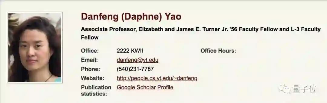 Danfeng Yao(弗吉尼亚理工大学):副教授,专长软件和系统安全。