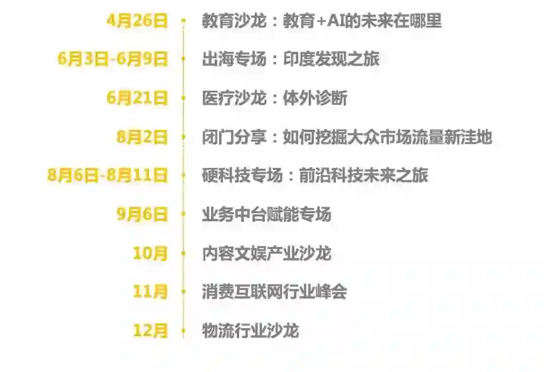 从今年 4 月起,每个月都将针对不同行业,举办不同形式、不同主题的深度创业活动: