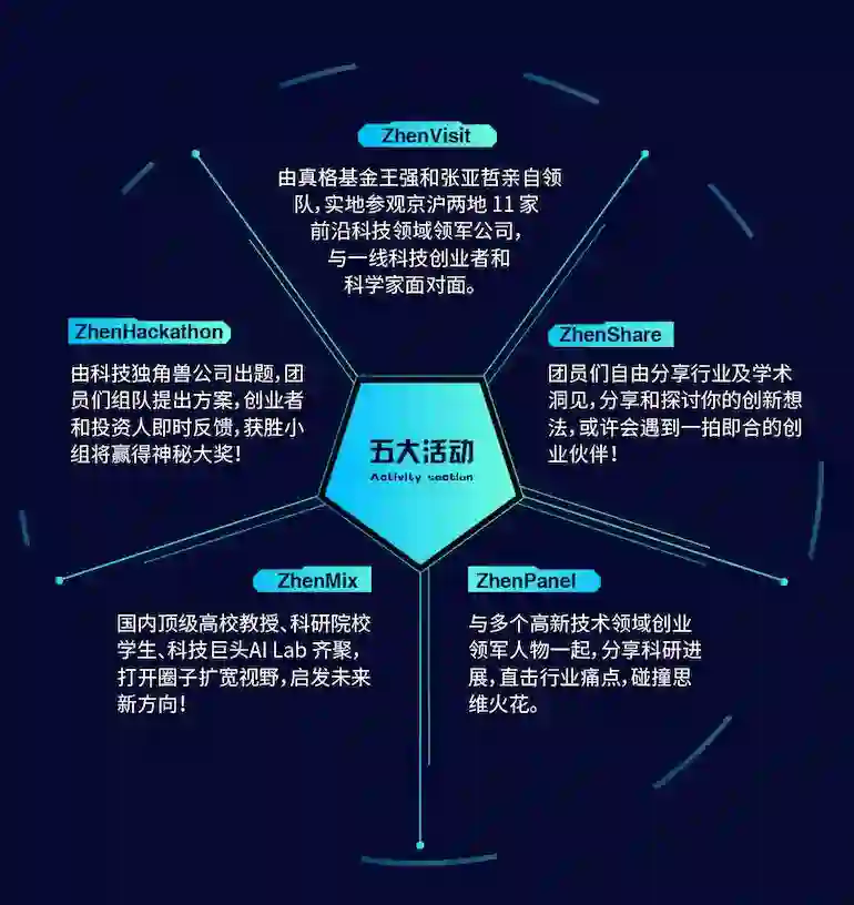 本次活动还特别设计了 ZhenVisit、ZhenPanel、ZhenHackathon、ZhenMix、ZhenShare 五大活动板块。