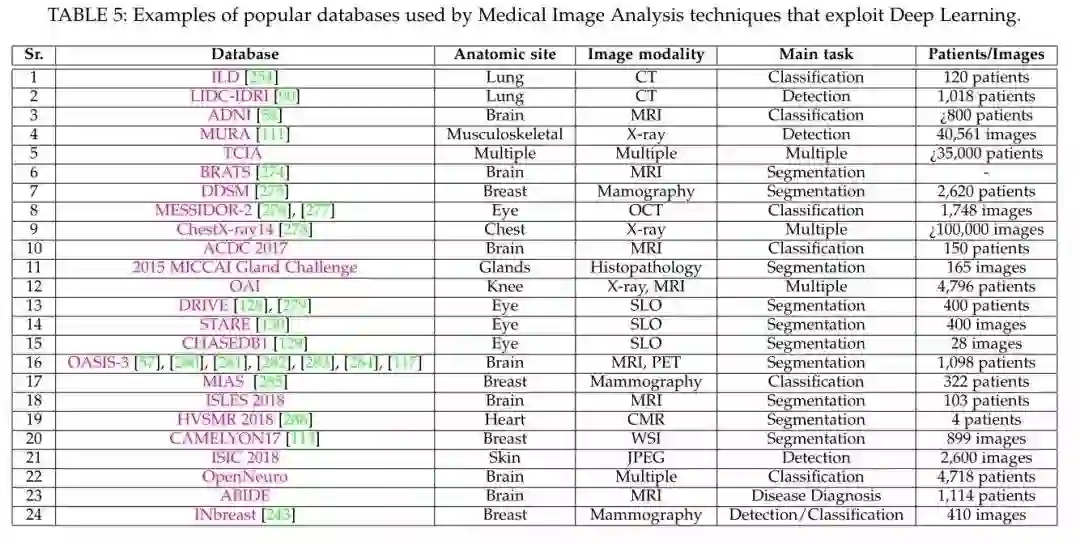 作者按照医学图像分析的技术方向和应用场景(使用的数据集)归纳成下图。